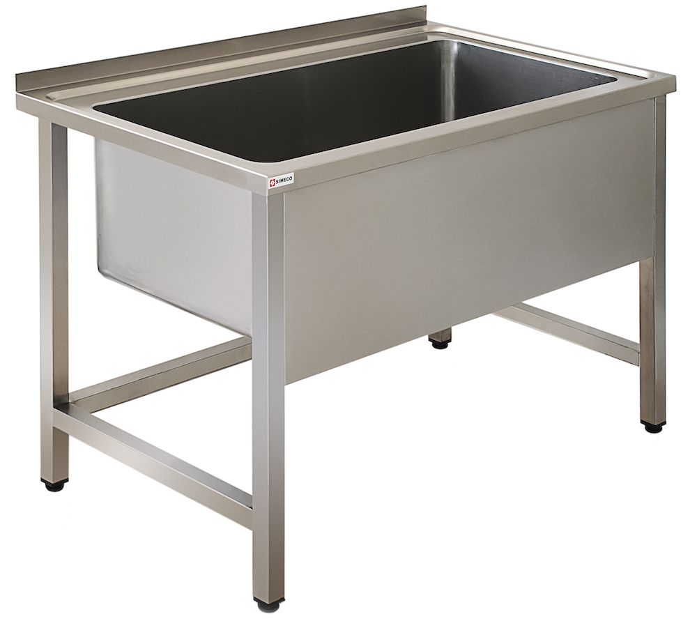 Simeco ВК1UП1407 используется на предприятиях общественного питания и торговли и предназначена для мойки крупногабаритной посуды и инвентаря. Модель оснащена фартуком, нижней сплошной полкой, задним бортиком 40 мм и регулируемыми по высоте ножками, что позволяет компенсировать неровности пола. Сварной каркас выполнен из трубы 40х40 мм, мойка цельнотянутая - из нержавеющей стали AISI 304 толщиной 1 мм, выпуск - из нержавеющей стали.