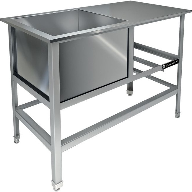 Моечная ванна KAYMAN ВМ-414/700 Л используется на предприятиях общественного питания и торговли для мойки продуктов питания, посуды и кухонных принадлежностей. Каркас выполнен из оцинкованного стального уголка, емкость и рабочая поверхность - из нержавеющей стали AISI 304.