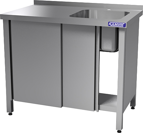 Моечная ванна КАМИК ВМ-1-411271 используется на предприятиях общественного питания и торговли для мойки посуды, овощей и фруктов. Сварной каркас и столешница выполнены из нержавеющей стали AISI 430, цельнотянутая емкость - из нержавеющей стали AISI 304.