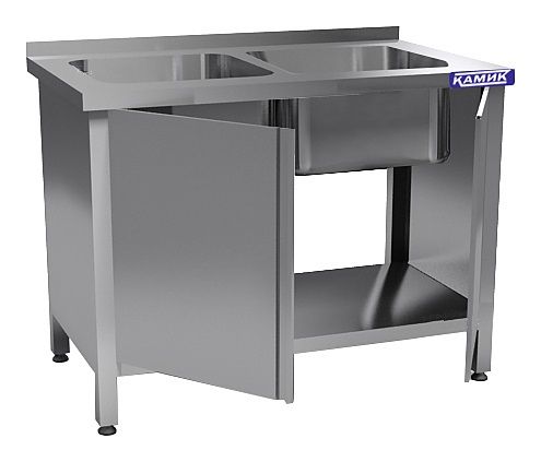 Моечная ванна КАМИК ВМ-2-471370 используется на предприятиях общественного питания и торговли для мойки посуды, овощей и фруктов. Сварной каркас и столешница выполнены из нержавеющей стали AISI 430, цельнотянутая емкость - из нержавеющей стали AISI 304.