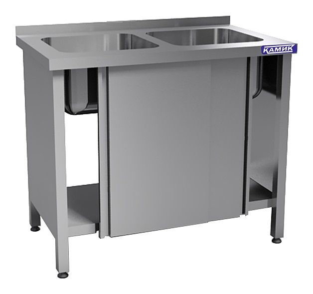 Моечная ванна КАМИК ВМ-2-4115701 используется на предприятиях общественного питания и торговли для мойки посуды, овощей и фруктов. Сварной каркас выполнен из нержавеющей стали AISI 430 толщиной 1 мм, столешница и цельнотянутая емкость - из нержавеющей стали AISI 304 толщиной 1,5 мм.