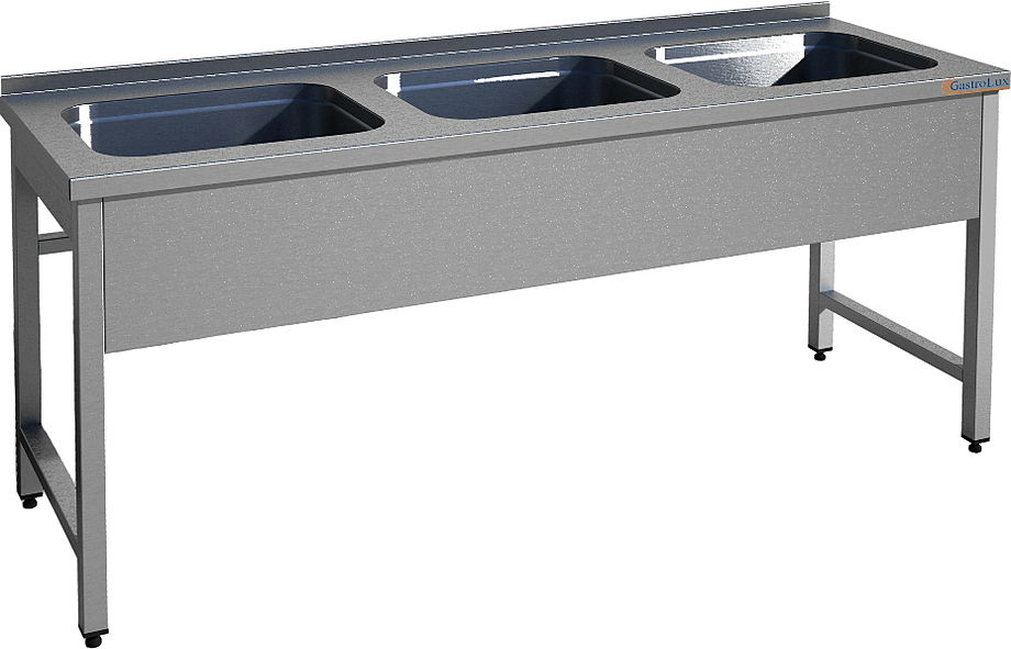 Моечная ванна Gastrolux ВМ3-187/55/S серии Standart используется на предприятиях общественного питания и торговли, в пекарнях, кондитерских и производственных помещениях для мойки приборов, посуды, кухонных принадлежностей и продуктов. Каркас выполнен из нержавеющего профиля 40х40.