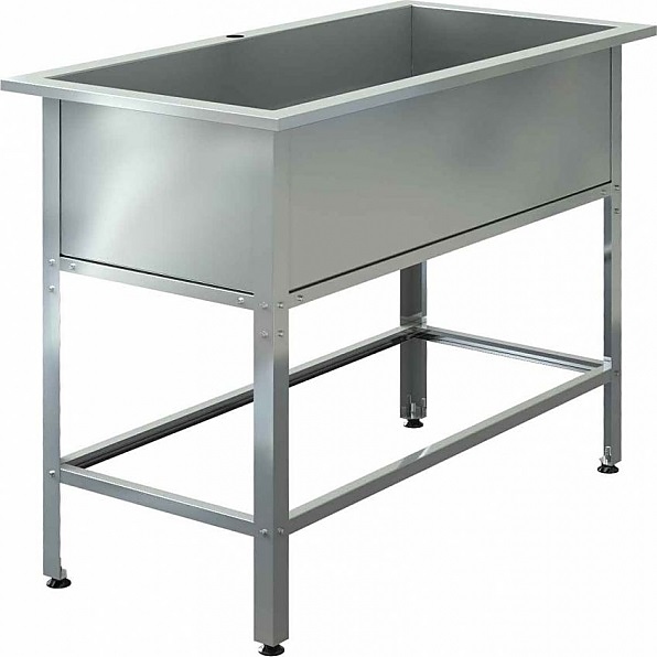 Моечная ванна Assum ВКС-С-1/600/1250 серии Стандарт используется на предприятиях общественного питания и торговли для мойки продуктов, посуды и прочего кухонного инвентаря. Модель оснащена 1 раковиной, отверстием для смесителя и выпуском. Материал сварной ванны - нержавеющая сталь AISI 430 (толщина 1 мм), материал каркаса - оцинкованная сталь (уголок 40х40 мм), материал опоры ножек - пластик.
