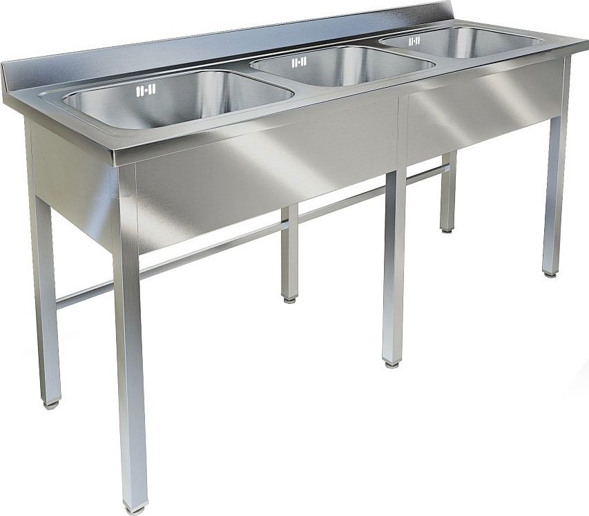 Моечная ванна Техно-ТТ ВМ-42/657 используется на предприятиях общественного питания, торговли и пищевых производствах для мытья и ополаскивания продуктов, посуды и различного инвентаря. Модель оснащена обвязкой ног по периметру, выпуском с нержавеющей решеткой, механическом запорным клапаном и регулируемыми опорами. На дне ванны ребра жесткости для снижения вибрации. Материал сварного каркаса - нержавеющая сталь AISI 430 (уголок 40x40 мм), материал емкостей - нержавеющая сталь AISI 304.