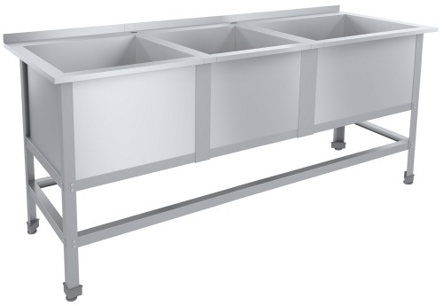 Моечная ванна Пищевые Технологии Эконом ЦК ВМО3-430ЭЦК-Мб предназначена для мытья посуды, кухонных принадлежностей и продуктов на предприятиях общественного питания, торговли и пищевых производствах. Модель оснащена сливным отверстием для сифона и регулируемыми ножками. Материал каркаса - оцинкованная сталь (уголок 38х38 мм, толщиной 1.5 мм), материал ванны - высококачественная нержавеющая сталь AISI 430, толщиной 0.5 мм.