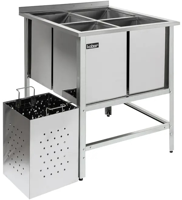 Моечная ванна Кобор ВМЯБ/1-70/70 предназначена для санитарной обработки яиц на предприятиях общественного питания и торговли. Сварной каркас выполнен из оцинкованного стального уголка, раковины - из нержавеющей стали AISI 430.