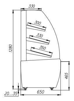 Хлебная витрина Carboma K70 N 0,9-2 LIGHT используется на предприятиях общественного питания и торговли для демонстрации и кратковременного хранения хлебобулочных изделий. Модель оснащена боковыми стеклами, 3 наклонными деревянными решетчатыми полками и регулируемыми ножками высотой от 20 до 35 мм. Основание и декоративные панели выполнены из стали, боковины - из пластика с пенополиуретановой теплоизоляцией, раздвижные задние створки - из оргстекла.