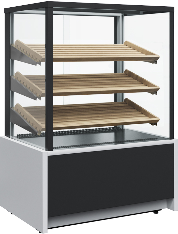 Хлебная витрина Carboma KC70 N 0,6-2 LIGHT (Сube Техно) используется на предприятиях общественного питания и торговли для демонстрации и крвтковременного хранения хлебобулочных изделий. Модель оснащена боковым остеклением, 3 наклонными деревянными полками и регулируемыми ножками высотой от 30 до 50 мм. Корпус выполнен из окрашенной стали с ППУ-изоляцией, раздвижные задние створки - из оргстекла.