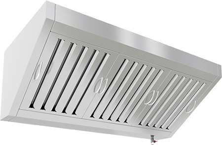 Вытяжной зонт предназначен для очистки воздуха от пара, гари и жира на предприятиях общественного питания и подключается к существующей системе вентиляции согласно проектному расчету. Модель оснащена лабиринтным фильтром и съемным жиросборником.