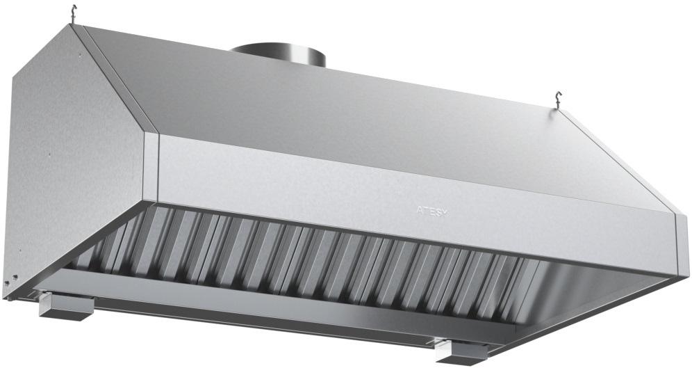 Зонт вытяжной ATESY ЗВН-Л-1-500.500.500-02 используется на предприятиях общественного питания, торговли и пищевых производствах для очистки воздуха от различных паров, дыма, жира и утилизации продуктов горения. В модели предусмотрен жиросборник и легкосъемные лабиринтные фильтры. Материал корпуса и лабиринтных фильтров - нержавеющая сталь AISI 304.