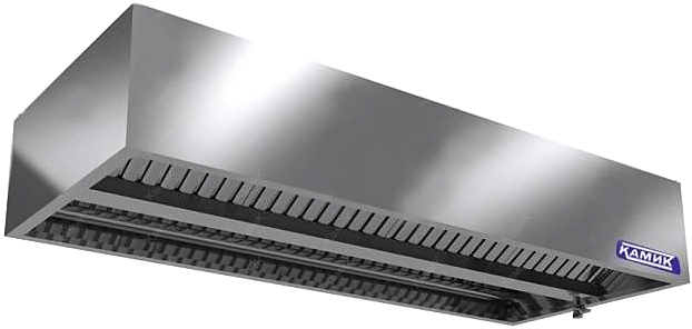 Центральный вытяжной зонт КАМИК ВЦ-К-1826 предназначен для очищения воздуха от излишков пара, дыма, жира и продуктов горения на предприятиях общественного питания, торговли и пищевых производствах. Зонт оснащен лабиринтными жироулавливающими фильтрами. Материал корпуса - нержавеющая сталь AISI 430.