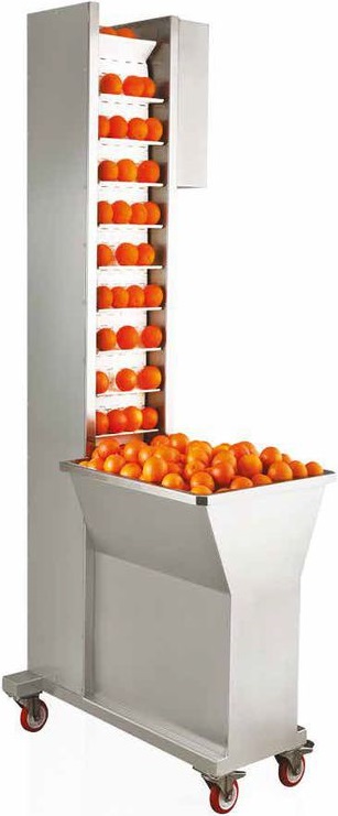 Бункер-подача для соковыжималок CanCan используется совместно с соковыжималками CanCan для профессионального применения в ресторанах, отелях, фреш-барах, буфетах, торговых или развлекательных центрах и прочих общественных местах, где ежедневно производится большое количество апельсинового сока. Модель оборудована резервуаром для хранения, кнопкой аварийного останова, которая выключает аппарат в случае неисправности и колесами с тормозами. Материал корпуса - нержавеющая сталь AiSI.