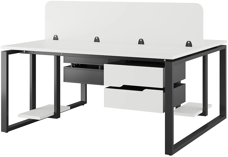 Офисный стол Кобор O1/2-80/120 black/premiuml предназначен для двух рабочих мест и идеально подходит для офисов и кабинетов руководителей. Модель оснащена О-образными опорами. Материал столешницы - прочный ЛДСП толщиной 25 мм, усиленная снизу металлическим каркасом, материал опор и каркаса - окрашенный металл.