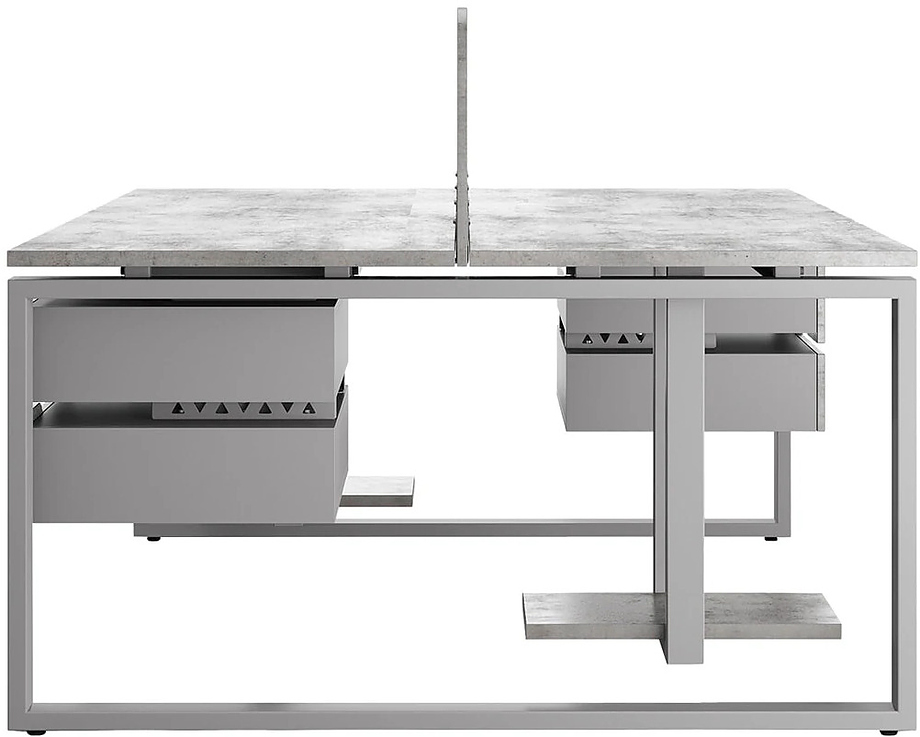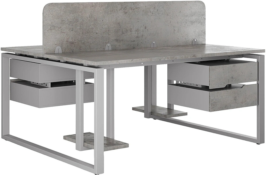 Офисный стол Кобор O1/2-80/120 aluminum/chicagol предназначен для двух рабочих мест и идеально подходит для офисов и кабинетов руководителей. Модель оснащена О-образными опорами. Материал столешницы - прочный ЛДСП толщиной 25 мм, усиленная снизу металлическим каркасом, материал опор и каркаса - окрашенный металл.