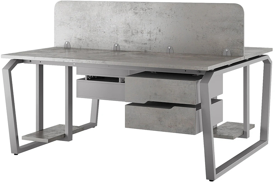 Офисный стол Кобор TB/2-80/120 aluminum/chicago предназначен для двух рабочих мест и идеально подходит для офисов и кабинетов руководителей. Модель оснащена опорами в виде обратной трапеции с скошенными верхними углами. Материал столешницы - прочный ЛДСП толщиной 25 мм, усиленная снизу металлическим каркасом, материал опор и каркаса - окрашенный металл.