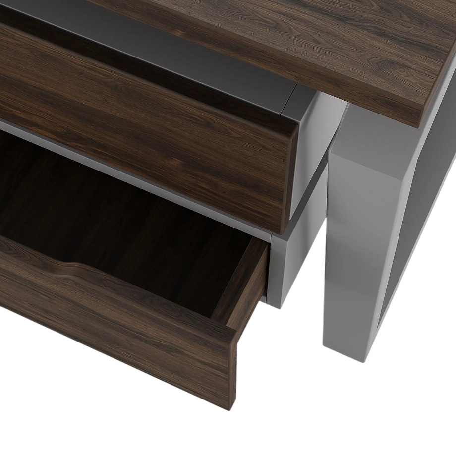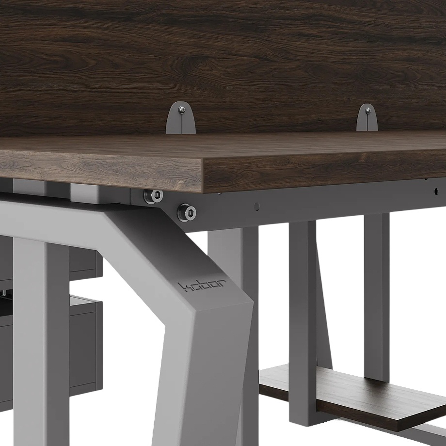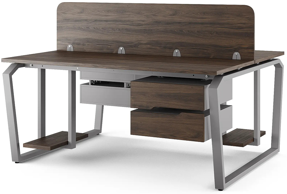 Офисный стол Кобор TB/2-80/120 aluminum/charlston предназначен для двух рабочих мест и идеально подходит для офисов и кабинетов руководителей. Модель оснащена опорами в виде обратной трапеции с скошенными верхними углами. Материал столешницы - прочный ЛДСП толщиной 25 мм, усиленная снизу металлическим каркасом, материал опор и каркаса - окрашенный металл.