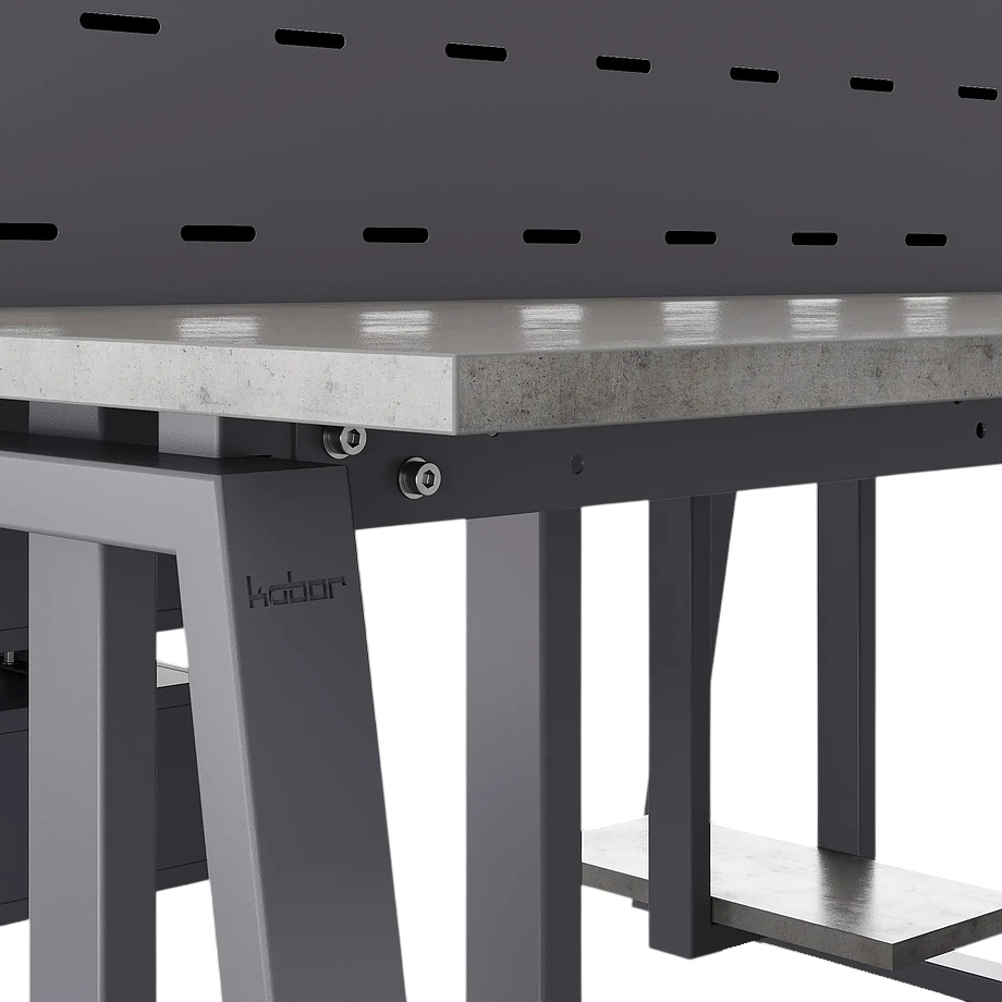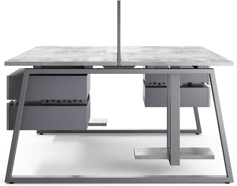 Офисный стол Кобор TR/2-80/120 graphite/chicago предназначен для двух рабочих мест и идеально подходит для офисов и кабинетов руководителей. Модель оснащена опорами в форме трапеции. Материал столешницы - прочный ЛДСП толщиной 25 мм, усиленная снизу металлическим каркасом, материал опор и каркаса - окрашенный металл.