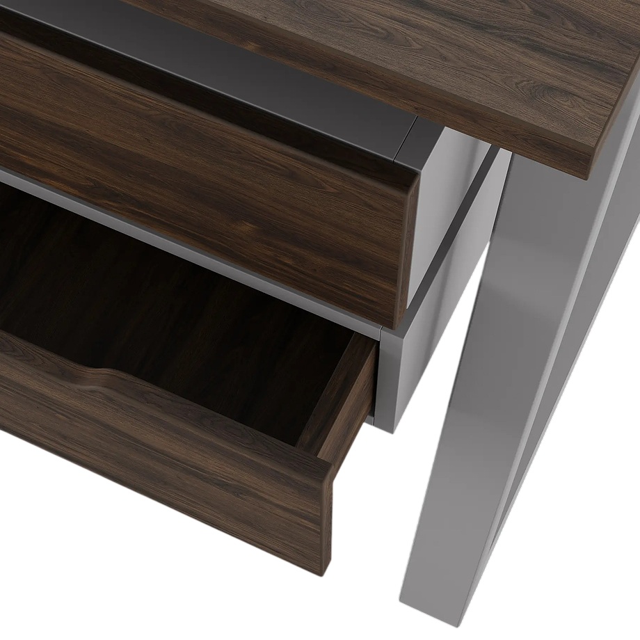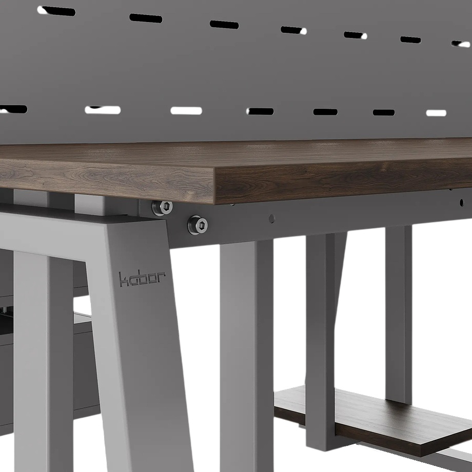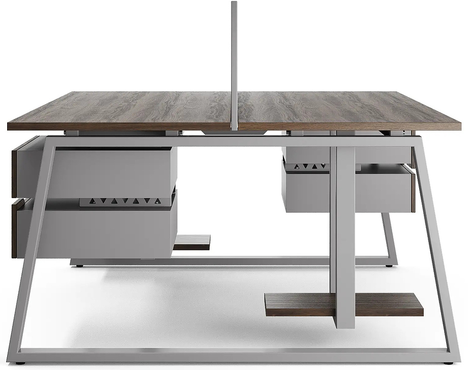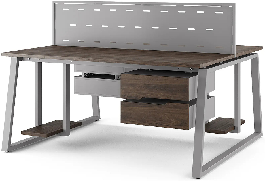 Офисный стол Кобор TR/2-80/120 aluminum/charlston предназначен для двух рабочих мест и идеально подходит для офисов и кабинетов руководителей. Модель оснащена опорами в форме трапеции. Материал столешницы - прочный ЛДСП толщиной 25 мм, усиленная снизу металлическим каркасом, материал опор и каркаса - окрашенный металл.