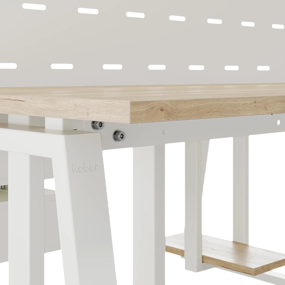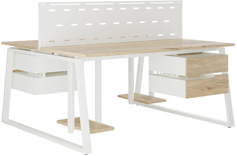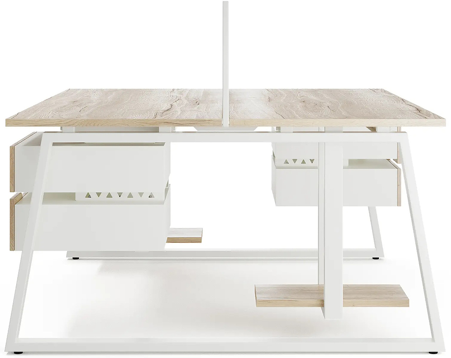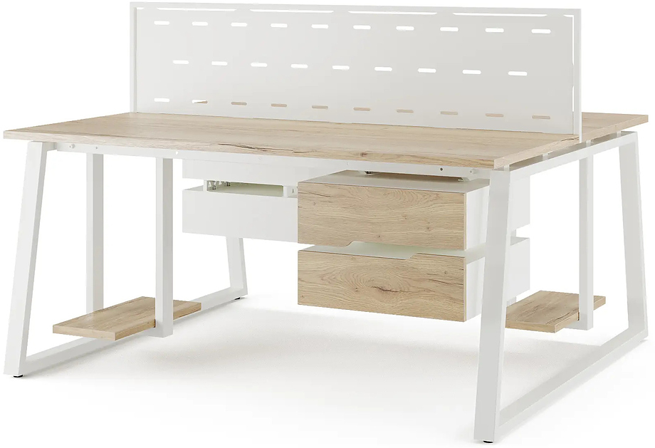 Офисный стол Кобор TR/2-80/120 white/natural предназначен для двух рабочих мест и идеально подходит для офисов и кабинетов руководителей. Модель оснащена опорами в форме трапеции. Материал столешницы - прочный ЛДСП толщиной 25 мм, усиленная снизу металлическим каркасом, материал опор и каркаса - окрашенный металл.