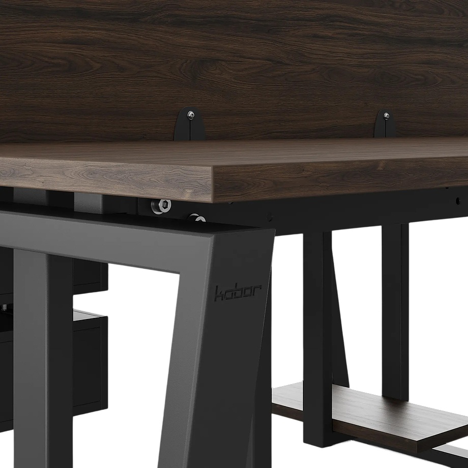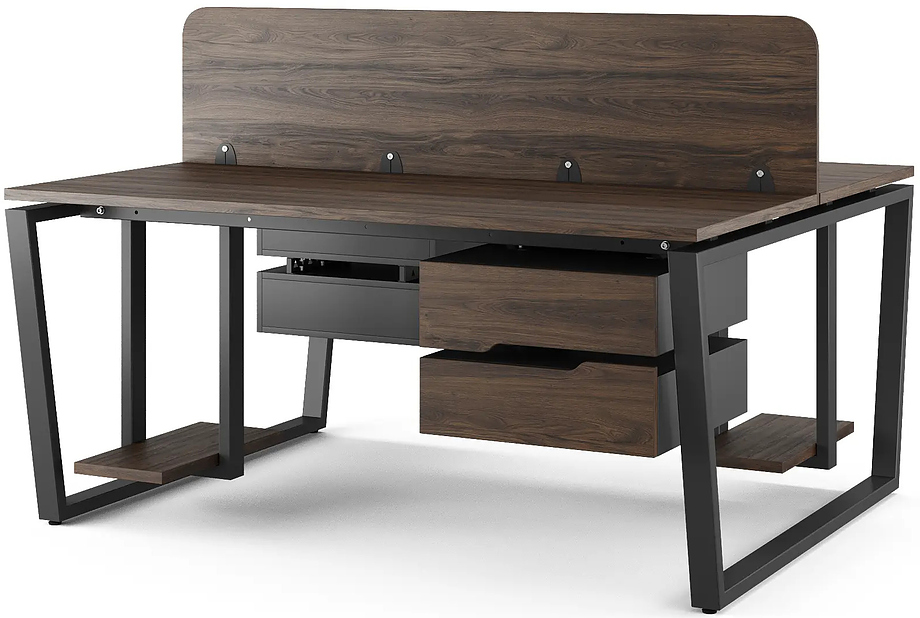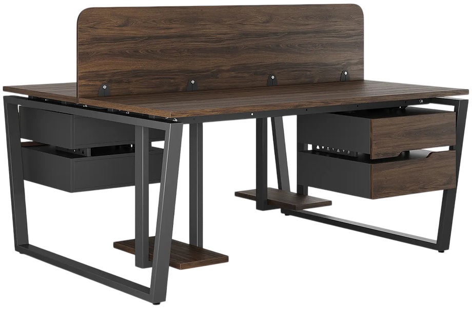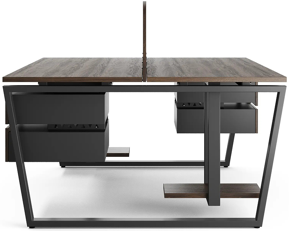 Офисный стол Кобор OTR/2-140/140 black/charlston предназначен для двух рабочих мест и идеально подходит для офисов и кабинетов руководителей. Модель оснащена опорами в виде обратной трапеции. Материал столешницы - прочный ЛДСП толщиной 25 мм, усиленная снизу металлическим каркасом, материал опор и каркаса - окрашенный металл.