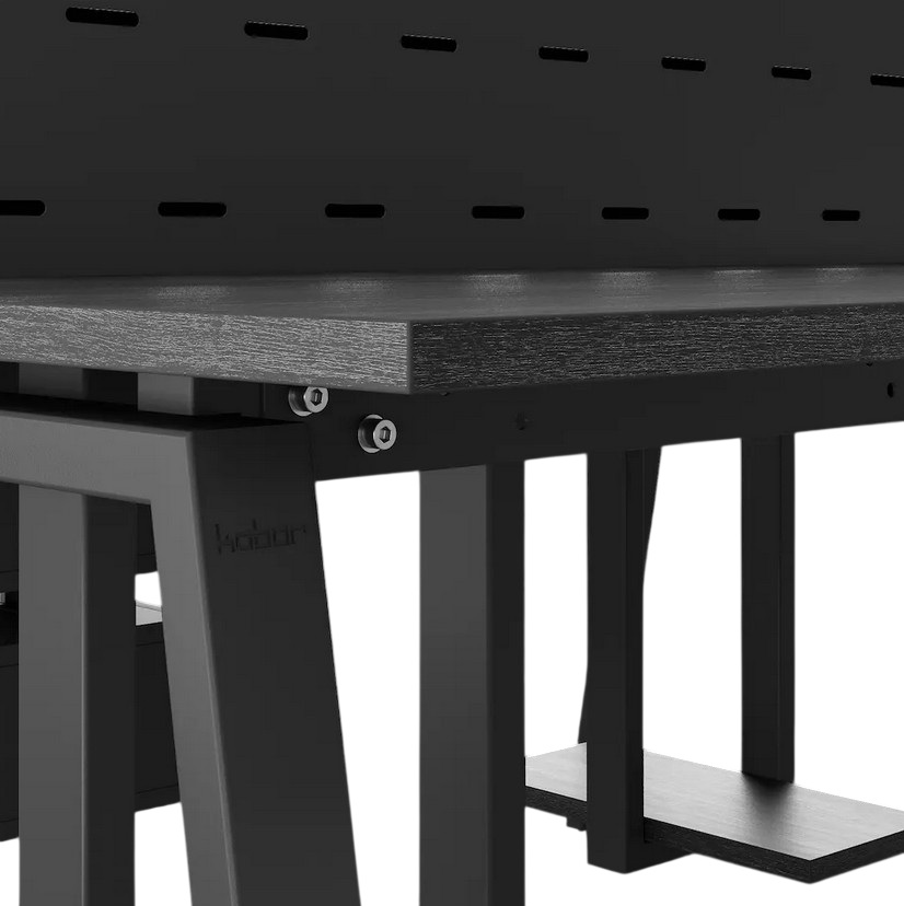 Офисный стол Кобор TA/2-80/120 black/wood предназначен для двух рабочих мест и идеально подходит для офисов и кабинетов руководителей. Модель оснащена А-образными опорами. Материал столешницы - прочный ЛДСП толщиной 25 мм, усиленная снизу металлическим каркасом, материал опор и каркаса - окрашенный металл.