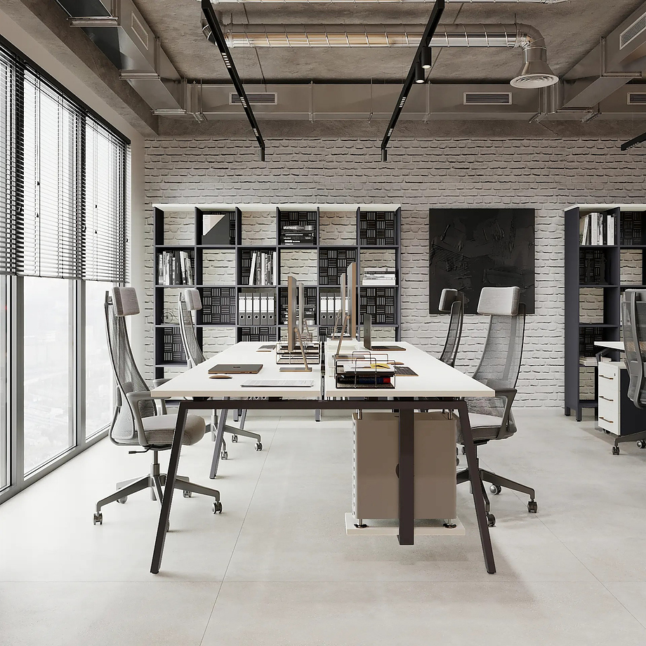 - Столы на металлических каркасах соответствуют современным тенденциям оформления офисных рабочих пространств