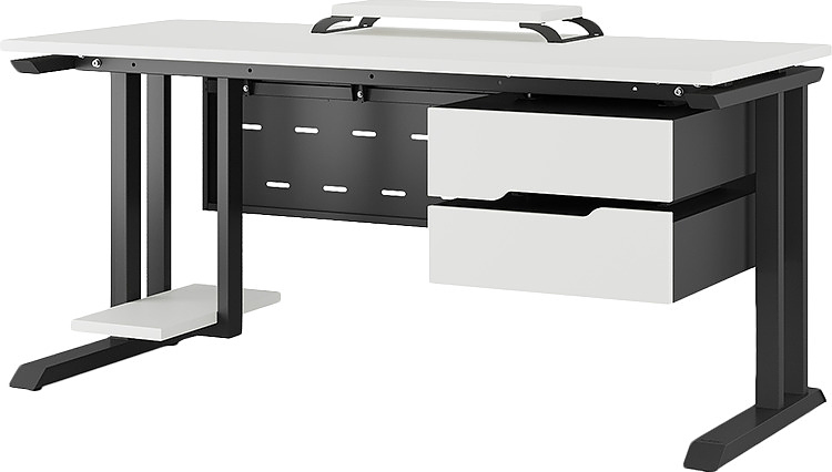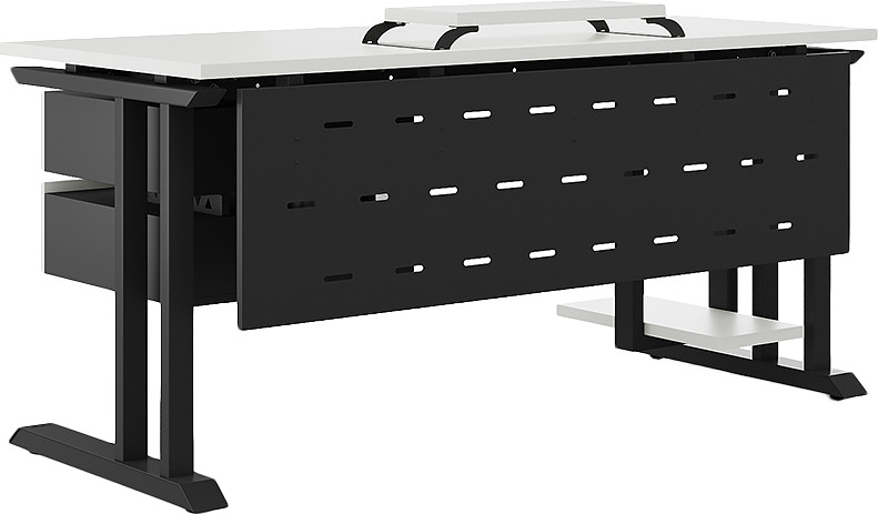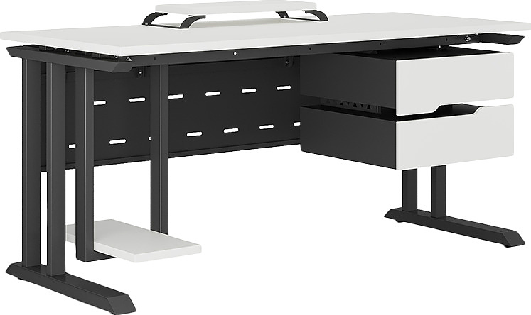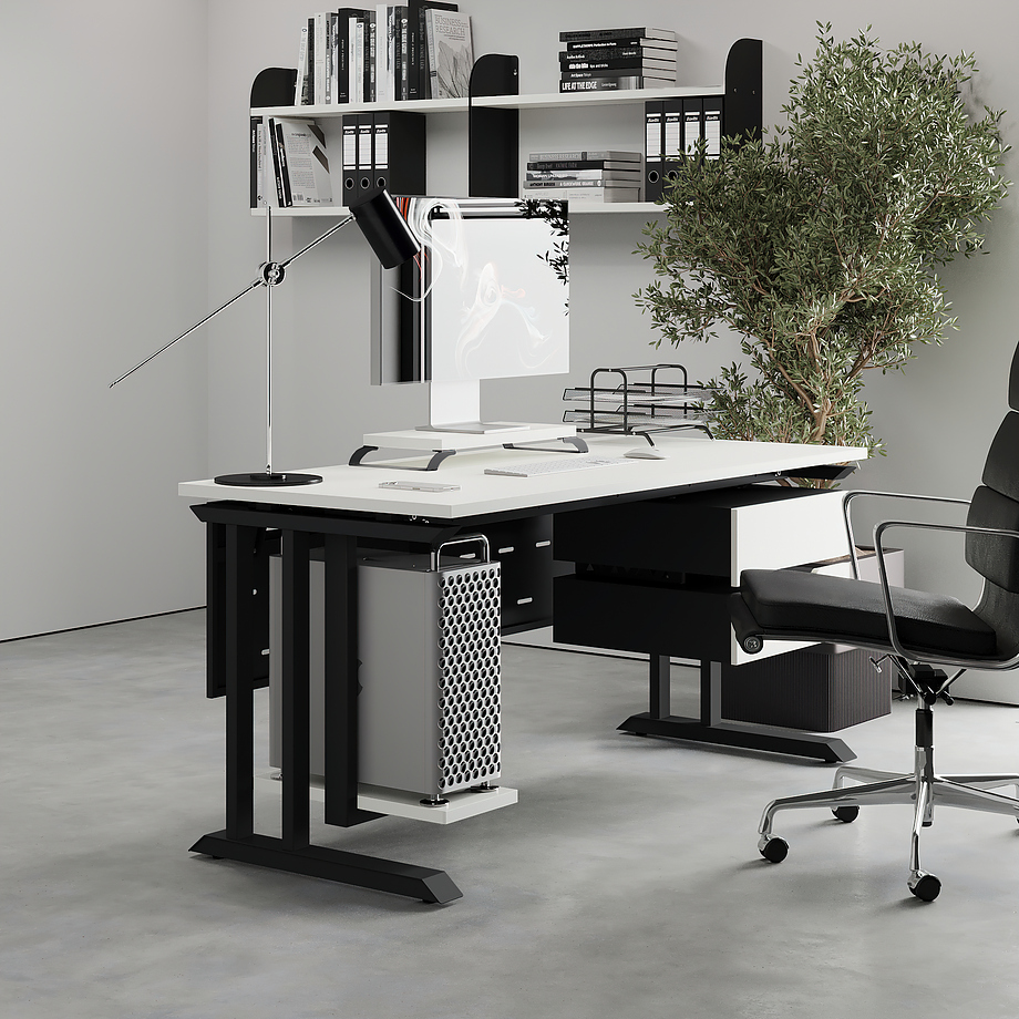 Офисный стол КОБОР L1-120/60 black/premium используется в офисных помещениях и кабинетах руководителей. Модель оснащена L-образными опорами. Материал столешницы - прочный ЛДСП толщиной 25 мм, усиленная снизу металлическим каркасом, материал опор - окрашенный металл.
