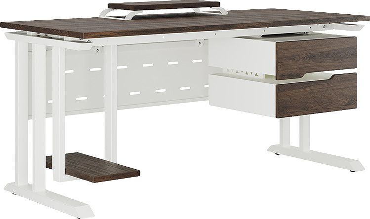 Офисный стол КОБОР L1-120/60 white/charlston используется в офисных помещениях и кабинетах руководителей. Модель оснащена L-образными опорами. Материал столешницы - прочный ЛДСП толщиной 25 мм, усиленная снизу металлическим каркасом, материал опор - окрашенный металл.