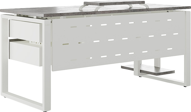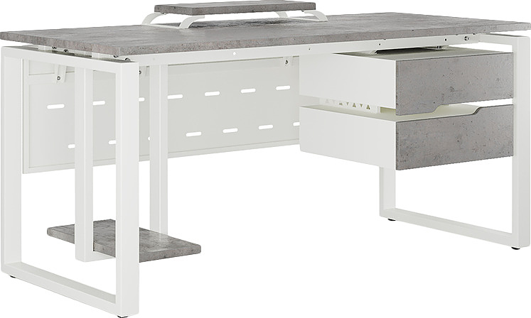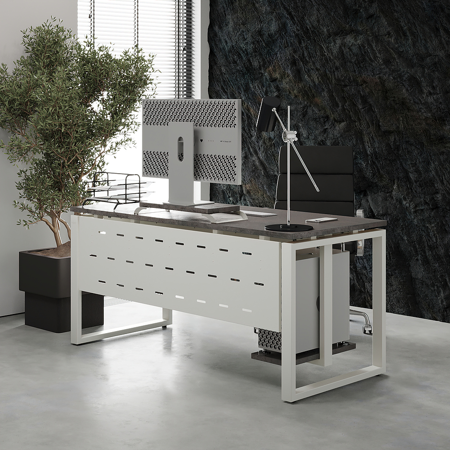 Офисный стол КОБОР O1-140/70 white/chicago используется в офисных помещениях и кабинетах руководителей. Модель оснащена О-образными опорами. Материал столешницы - прочный ЛДСП толщиной 25 мм, усиленная снизу металлическим каркасом, материал опор - окрашенный металл.