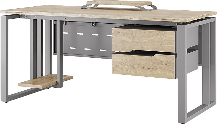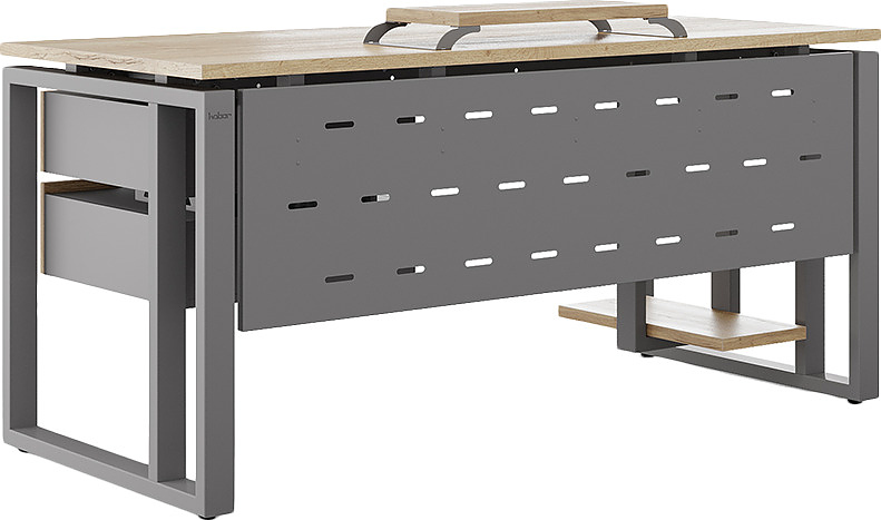 Офисный стол КОБОР O2-140/70 aluminum/natural используется в офисных помещениях и кабинетах руководителей. Модель оснащена О-образными опорами и усиленной вертикальной балкой. Материал столешницы - прочный ЛДСП толщиной 25 мм, усиленная снизу металлическим каркасом, материал опор - окрашенный металл.