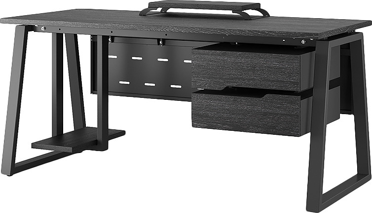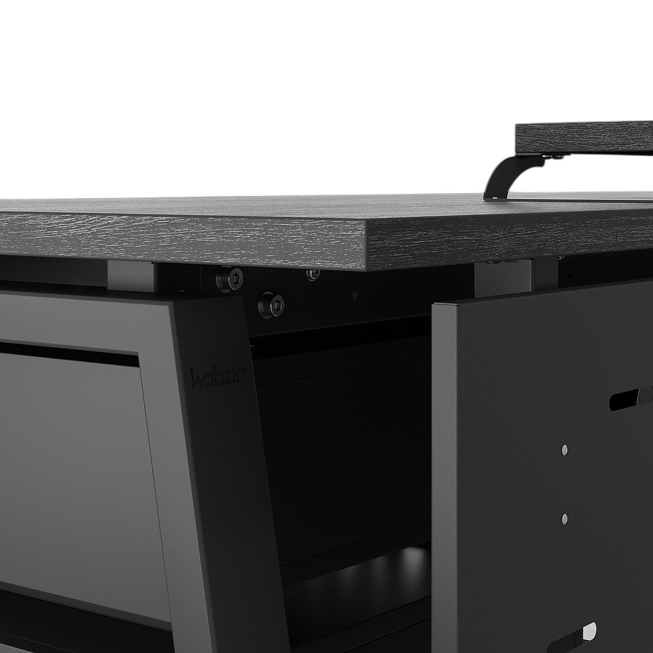 Офисный стол КОБОР TR-120/60 black/wood используется в офисных помещениях и кабинетах руководителей. Модель оснащена трапециообразными опорами. Материал столешницы - прочный ЛДСП толщиной 25 мм, усиленная снизу металлическим каркасом, материал опор - окрашенный металл.