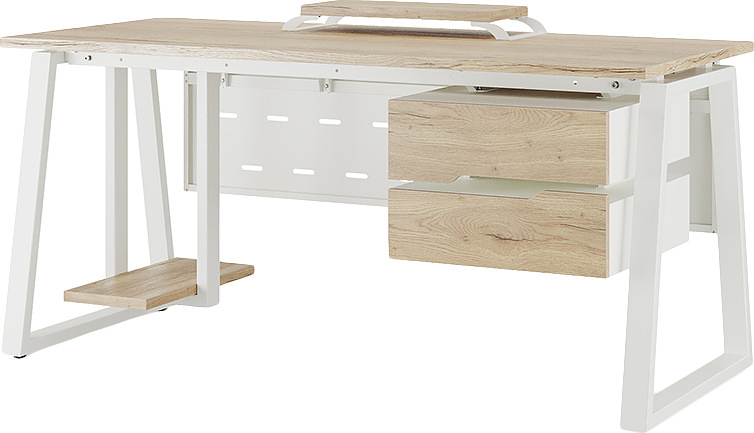 Офисный стол КОБОР TR-120/60 white/natural используется в офисных помещениях и кабинетах руководителей. Модель оснащена трапециообразными опорами. Материал столешницы - прочный ЛДСП толщиной 25 мм, усиленная снизу металлическим каркасом, материал опор - окрашенный металл.