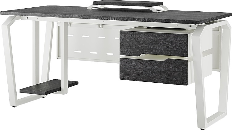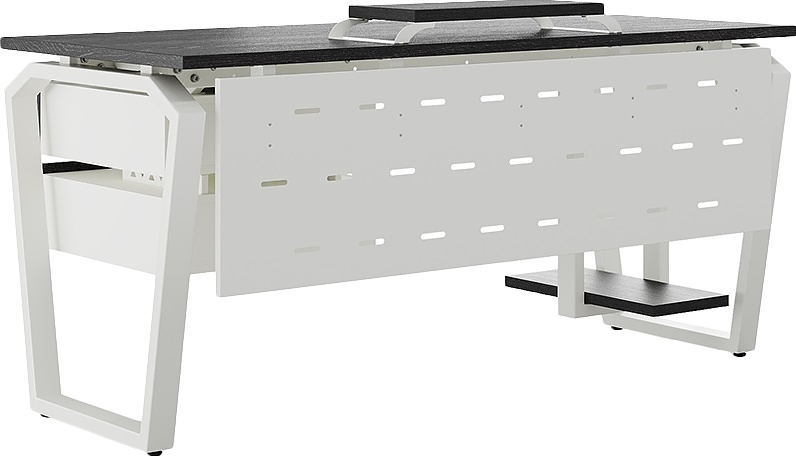 Офисный стол КОБОР TB-120/60 white/wood используется в офисных помещениях и кабинетах руководителей. Конструкция модели включает опоры, выполненные в виде перевернутой трапеции со скошенными верхними углами. Материал столешницы - прочный ЛДСП толщиной 25 мм, усиленная снизу металлическим каркасом, материал опор - окрашенный металл.