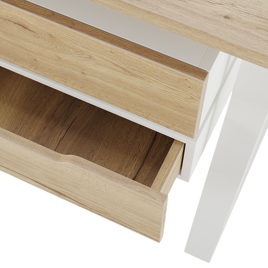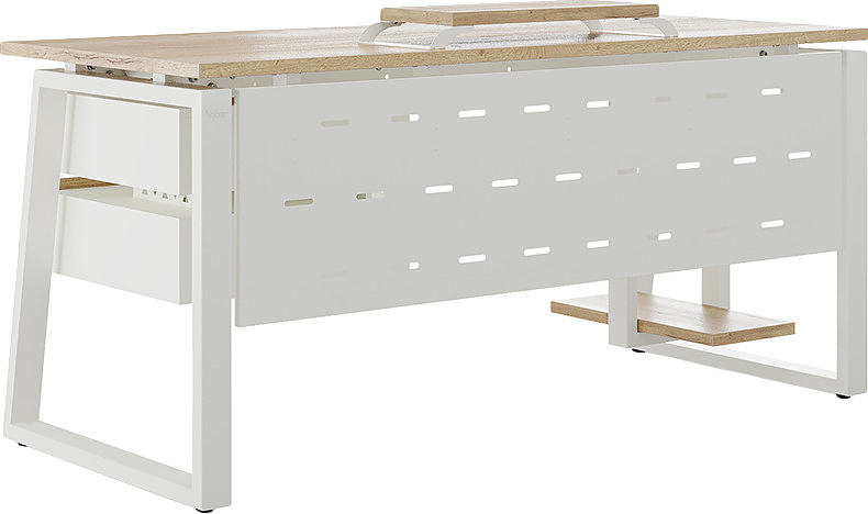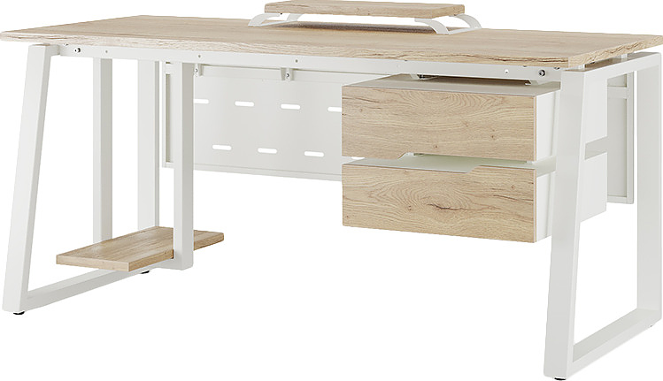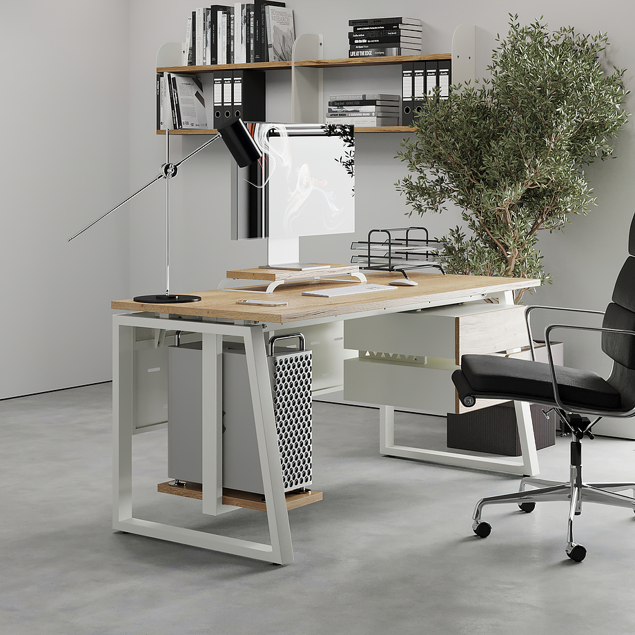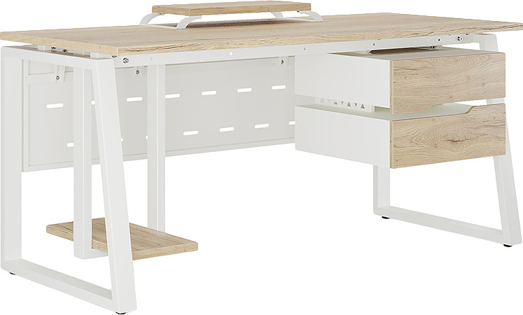 Офисный стол КОБОР TS1-120/60 white/natural используется в офисных помещениях и кабинетах руководителей. Модель оснащена опорами в форме наклонной трапеции. Материал столешницы - прочный ЛДСП толщиной 25 мм, усиленная снизу металлическим каркасом, материал опор - окрашенный металл.