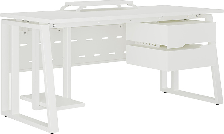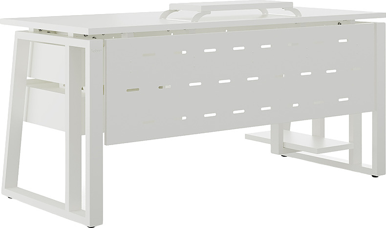 Офисный стол КОБОР TS2-140/70 white/premium используется в офисных помещениях и кабинетах руководителей. Модель оснащена опорами в форме наклонной трапеции с усиленными вертикальными балками. Материал столешницы - прочный ЛДСП толщиной 25 мм, усиленная снизу металлическим каркасом, материал опор - окрашенный металл.