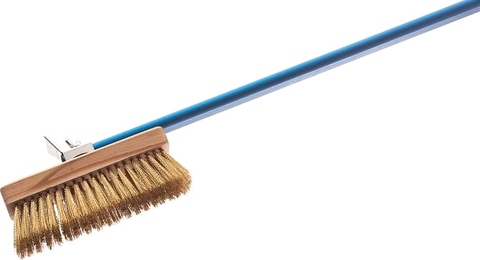 Щетка GIMETAL AC-SP используется для чистки камер электрических печей для пиццы от золы, остатков продукции. Длинная рукоятка с отверстием для подвешивания. Материал рукоятки - анодированный алюминий с лазурно-голубым покрытием, материал головки - дерево, материал щетины - латунь, материал ручки - нержавеющая сталь.