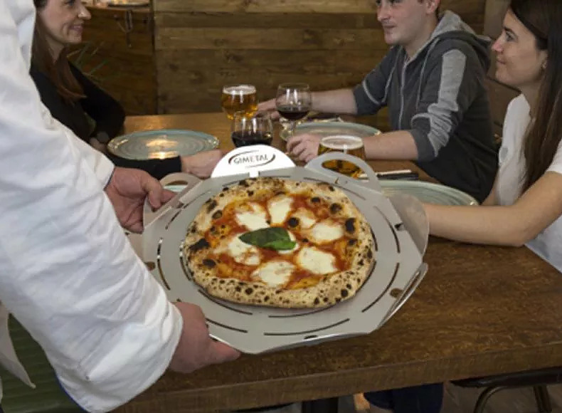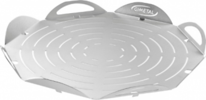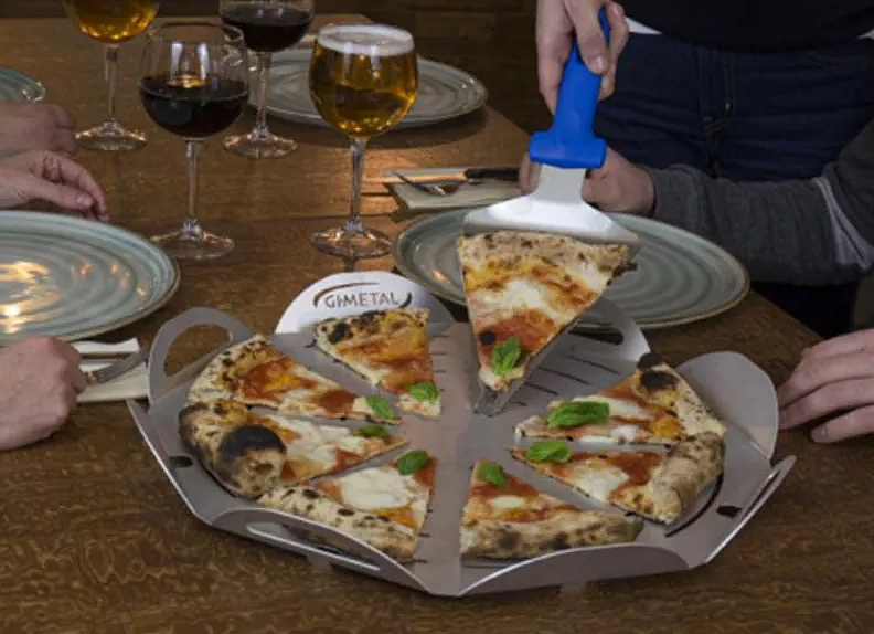 Поднос для пиццы GiMetal VPFT50 предназначается для выкладки, подачи, нарезания пиццы и прочих изделий на предприятиях общественного питания, торговли, пищевых производствах и в домашних условиях. Основание подноса - правильный 8-угольник, 8 бортиков в виде округлых лепестков. Материал изготовления - высококачественный алюминий, перфорация выполнена методом лазерной проточки.