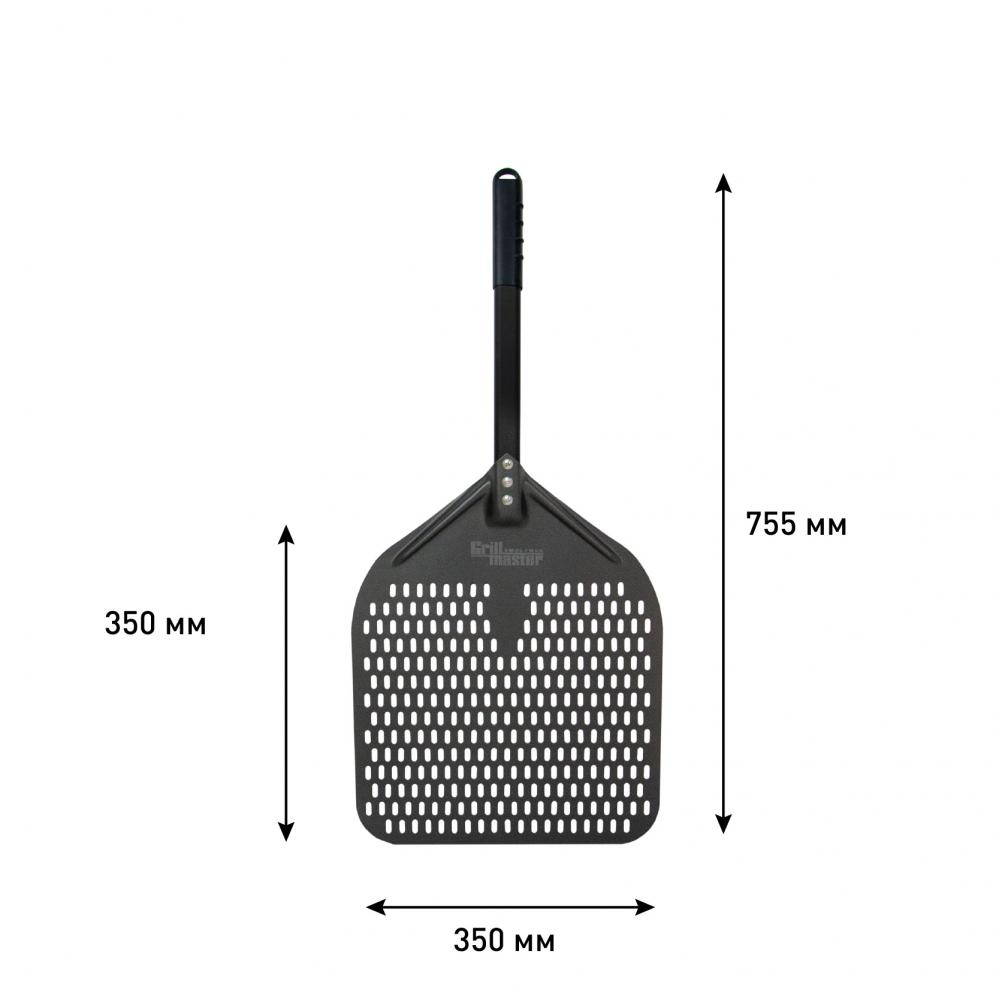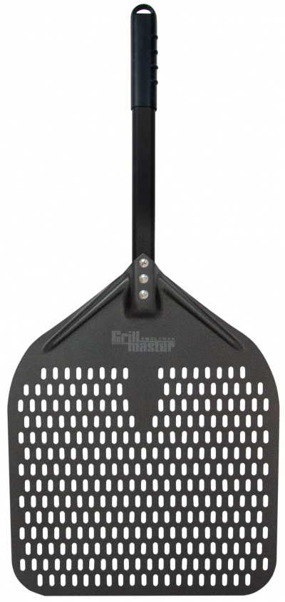 Лопата Grill Master 330-S используется для загрузки, выгрузки и поворачивания пиццы и других хлебобулочных изделий в процессе приготовления на предприятиях общественного питания, торговли, пищевых производствах и в домашних условиях. Модель оснащена перфорацией и удобной ручкой с резиновым наконечником. Кромка лопаты со снятой фаской. Материал изделия - анодированный алюминий черного цвета толщиной 1.5 мм.