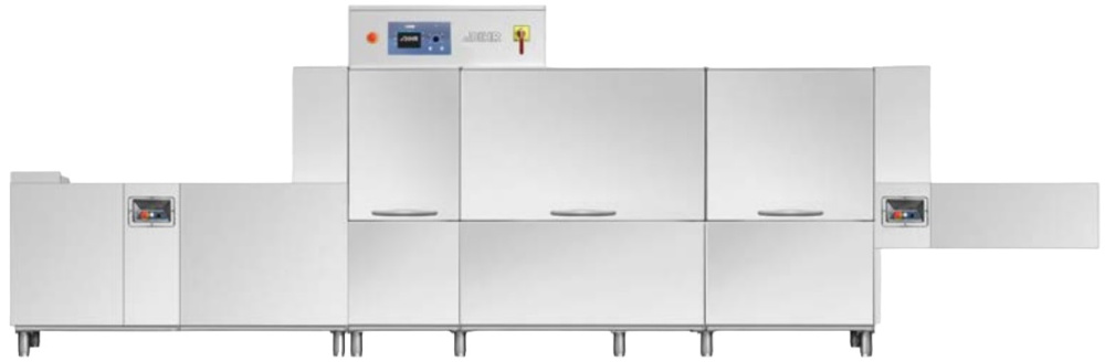 Туннельная машина DIHR LX 751 DX спец.+DDE+DRF99MB+XP+SAN/3 части используется на предприятиях общественного питания, торговли, пищевых производствах, в медицинских и муниципальных учреждениях для мойки сплошных ящиков, форм для тортов и кексов. Модель оснащена электронным управлением, вертикальными самоочищающимися моечными насосами, модульной сушкой, дополнительной мощностью для подключения к холодной воде, системой самоочистки и ножками. Материал штампованной кислотоустойчивой ванны и бойлера - высококачественная нержавеющая сталь AISI 316, материал фильтров - нержавеющая сталь.