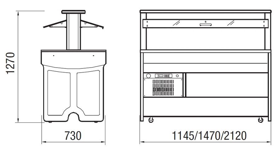• Данная модель имеет островное исполнение – доступ к зоне выкладки продуктов обеспечивается с двух сторон. Для большего комфорта при самообслуживании можно дополнительно заказать удобные направляющие, на которые клиенты смогут ставить тарелки или подносы.