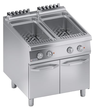 Макароноварка Veroterm VT4CPEP05 серии 900 используется на предприятиях общественного питания, торговли и пищевых производствах для варки макаронных изделий, овощей, морепродуктов, изделий из теста, гарниров и других продуктов. Модель оснащена механическим управлением, краном и регуляторами температуры. Материал корпуса - высококачественная нержавеющая сталь AISI 430 (толщина 1 мм).