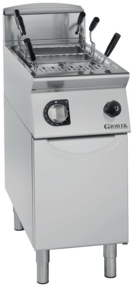 Макароноварка Giorik Unika 900 CPE926 предназначена для приготовления различных макаронных изделий на предприятиях общественного питания, торговли и пищевых производствах. Модель оснащена электромеханическим управлением, регулировкой температуры для каждой ванны, защитным термостатом от перегрева, световыми индикаторами работы, краном для слива, шкафом для хранения различного инвентаря и регулируемыми ножками. Материал корпуса - высококачественная нержавеющая сталь.