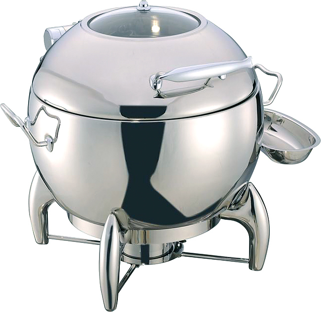 Чафинг-диш MVQ 10-11L используется на предприятиях общественного питания и торговли, в частных домах и квартирах для поддержания в горячем состоянии готовых блюд. Модель оснащена стеклянной крышкой с клапаном, съемным держателем для столовых приборов и горелкой для горючего геля или сухого спирта. Изделие выполнено из высококачественной нержавеющей стали, которая легко моется и не впитывает запахов.