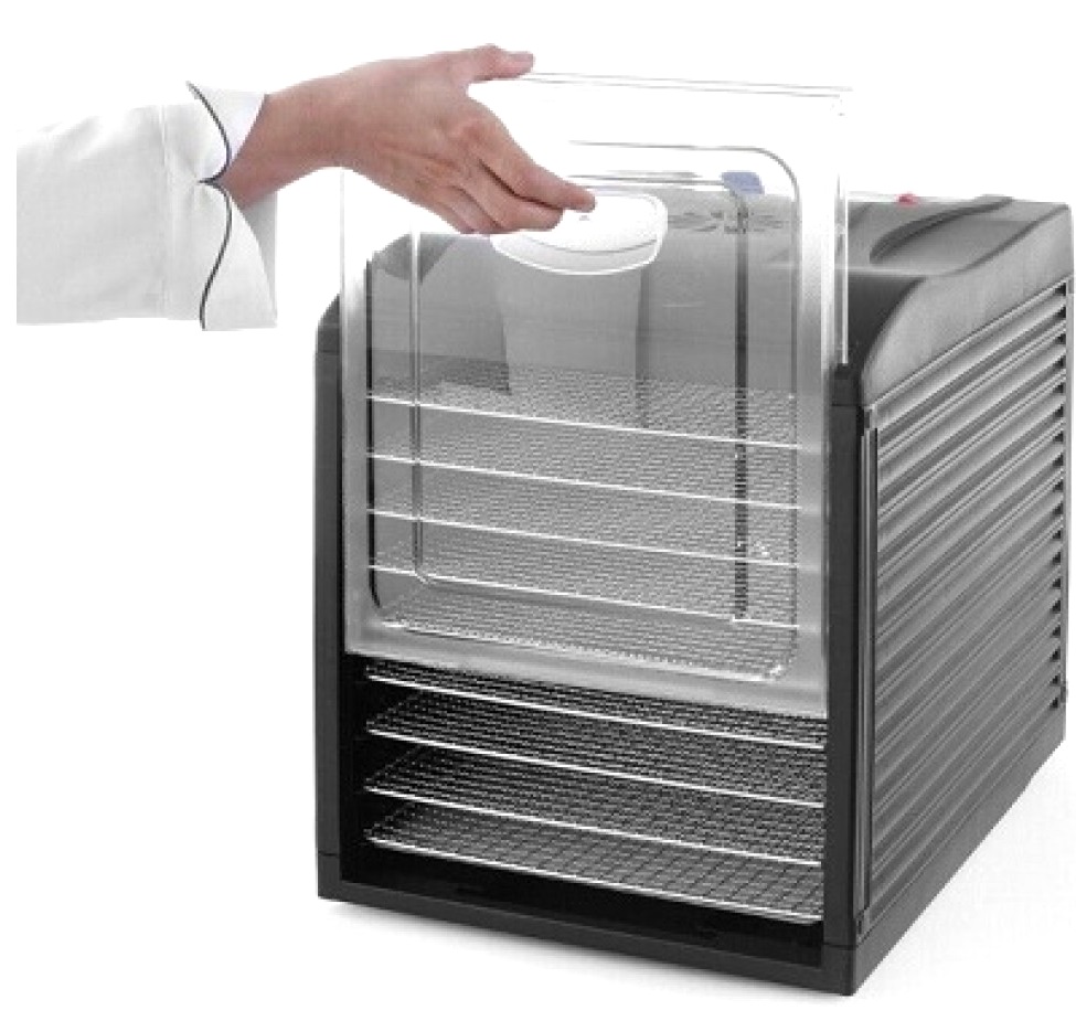 Дегидратор SousVideTools SVT-12003EU используется для равномерного извлечения влаги из овощей, грибов, фруктов, ягод, трав и орехов на предприятиях общественного питания, торговли и производствах. Таймер до 24 часов с шагом 30 минут. Две ручки для регулировки температуры и времени сушки. Материал корпуса - высококачественный прочный поликарбонат, дверь выполнена из закалённого стекла. Электромеханическая панель управления.