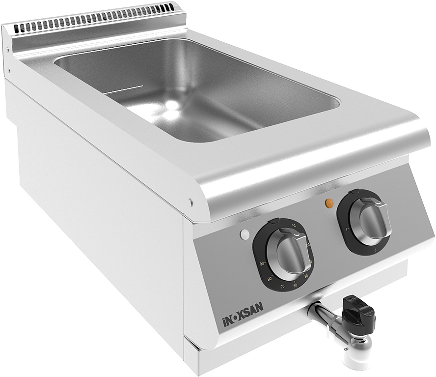 Мармит INOKSAN INO-KSN160G серии 700 предназначен для поддержания температуры готовых блюд на предприятиях общественного питания, торговли и пищевых производствах. Модель оснащена термостатом, автопредохранителем, краном для слива и световыми индикаторами.