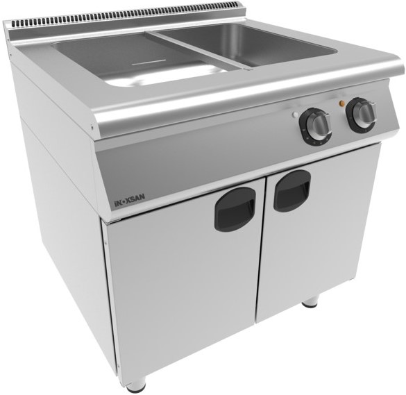 Мармит INOKSAN INO-7BE20 серии 700 предназначен для поддержания температуры готовых блюд на предприятиях общественного питания, торговли и пищевых производствах. Модель оснащена электромеханическим управлением, термостатом, автопредохранителем, световыми индикаторами и закрытым шкафом для хранения кухонной утвари. Материал корпуса - высококачественная нержавеющая сталь.