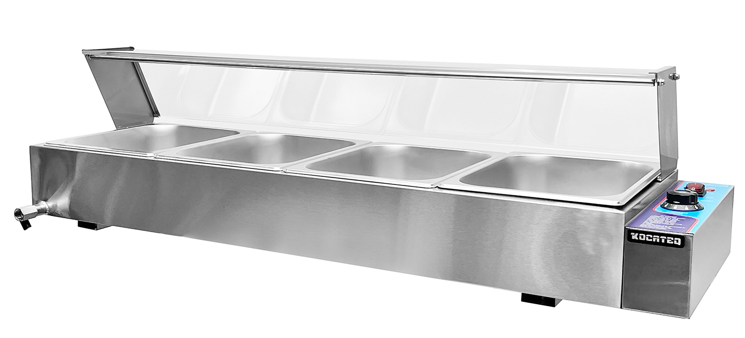 Мармит Kocateq BSB 5 GL серии Green Line используется на предприятиях общественного питания, торговли и пищевых производствах для поддержания готовых блюд в горячем состоянии. Модель оснащена аналоговым термостатом, световыми индикаторами и защитным термостатом. Материал корпуса - высококачественная нержавеющая сталь AISI 201 толщиной 0.7 мм.