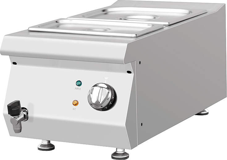 Мармит Kocateq 0M0BME класса Medium-Duty предназначен для поддержания готовых блюд в горячем виде на предприятиях общественного питания и торговли. Модель оснащена механическим термостатом для регулировки температуры и защитным термостатом, автоматически отключающим напряжение при повреждении основного термостата. Декоративные ручки с накладками выполнены из нержавеющей стали, поверхности, соприкасающиеся с продуктами, - из нержавеющей стали AISI 304 толщиной 1 мм, дно и задняя стенка - из нержавеющей стали AISI 201 толщиной 1 мм.