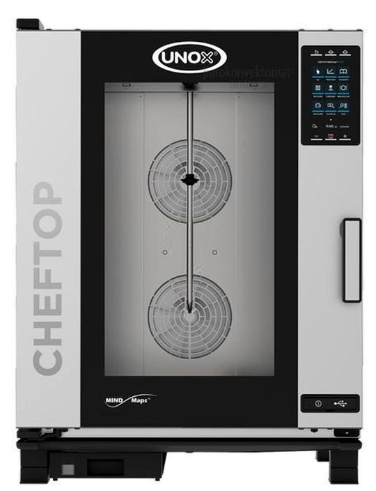 Пароконвектомат UNOX XEVC-1011-GPR серии ChefTop MIND.Maps предназначен для приготовления различных блюд, выпечки хлебобулочных и кондитерских изделий на предприятиях общественного питания и торговли, в пекарнях и кондитерских. Модель оснащена подсветкой посредством внешней LED-лампы и C-образными с зубчатыми нишами направляющими. Внутреннее открывающееся стекло облегчают чистку и обеспечивают максимальную гигиену. Камера с закругленными углами выполнена из нержавеющей стали AISI 304, направляющие - из профилированной стали, дверной замок - из высокопрочного самосмазывающегося технополимера, внутренний штифт дверной ручки - из углеродного волокна.