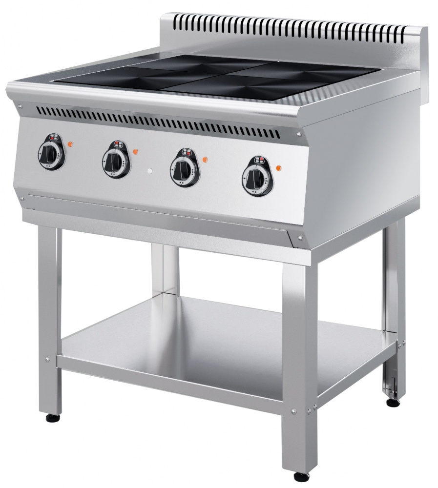 Электрическая плита KAYMAN ПЭ-4-111-МХ используется на предприятиях общественного питания, торговли и пищевых производствах для приготовления блюд в наплитной посуде. 4 терморегулятора на передней панели Плита поставляется на подставке. Материал столешницы и лицевой панели - нержавеющая сталь, боковины и подставка окрашены.